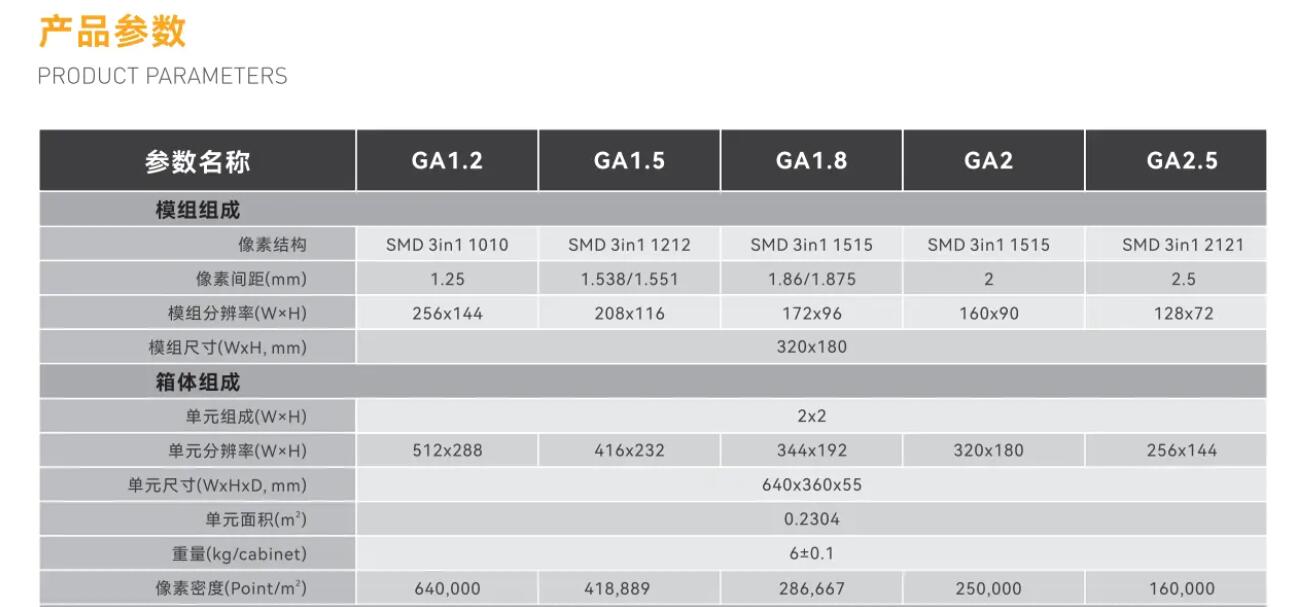 GA箱體是-款640x360mm尺寸的平臺(tái)級(jí)箱體,其比例為16:9,配合模組可組成顯示分辨率為16:9的標(biāo)準(zhǔn)分辨率,還原真彩視界。該箱體架構(gòu)集成度高,隱藏式走線,屏體整潔美觀。模組搭配GMS輕鋼系列中的GMS PIus模組(320x180mm),可實(shí)現(xiàn)雙卡雙電源冗余備份,亦可實(shí)現(xiàn)雙電力方案,功能強(qiáng)大實(shí)用。廣泛應(yīng)用于會(huì)議室、展廳、調(diào)度中心、指揮中心等場(chǎng)所。
